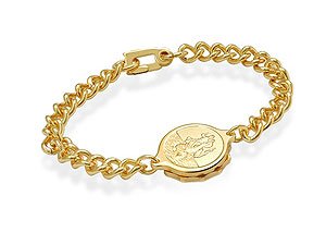 A large link gold plated bracelet with a St. Christopher medical alert talisman - a stylish and useful way to keep medical details to the fore.